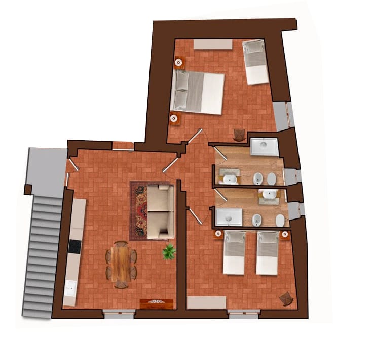 All'occorrenza è possibile ricavare due ulteriori posti letto con il comodo divano letto che si trova in soggiorno.